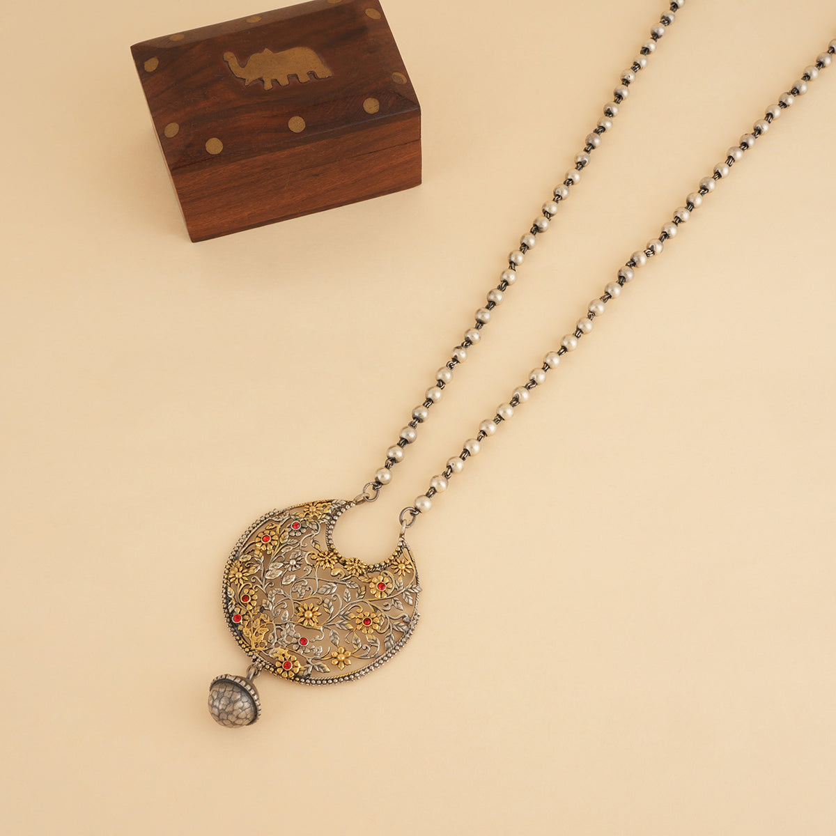 Intricate dual-tone Jaali work pendant, crafted to perfection for timeless traditional elegance.