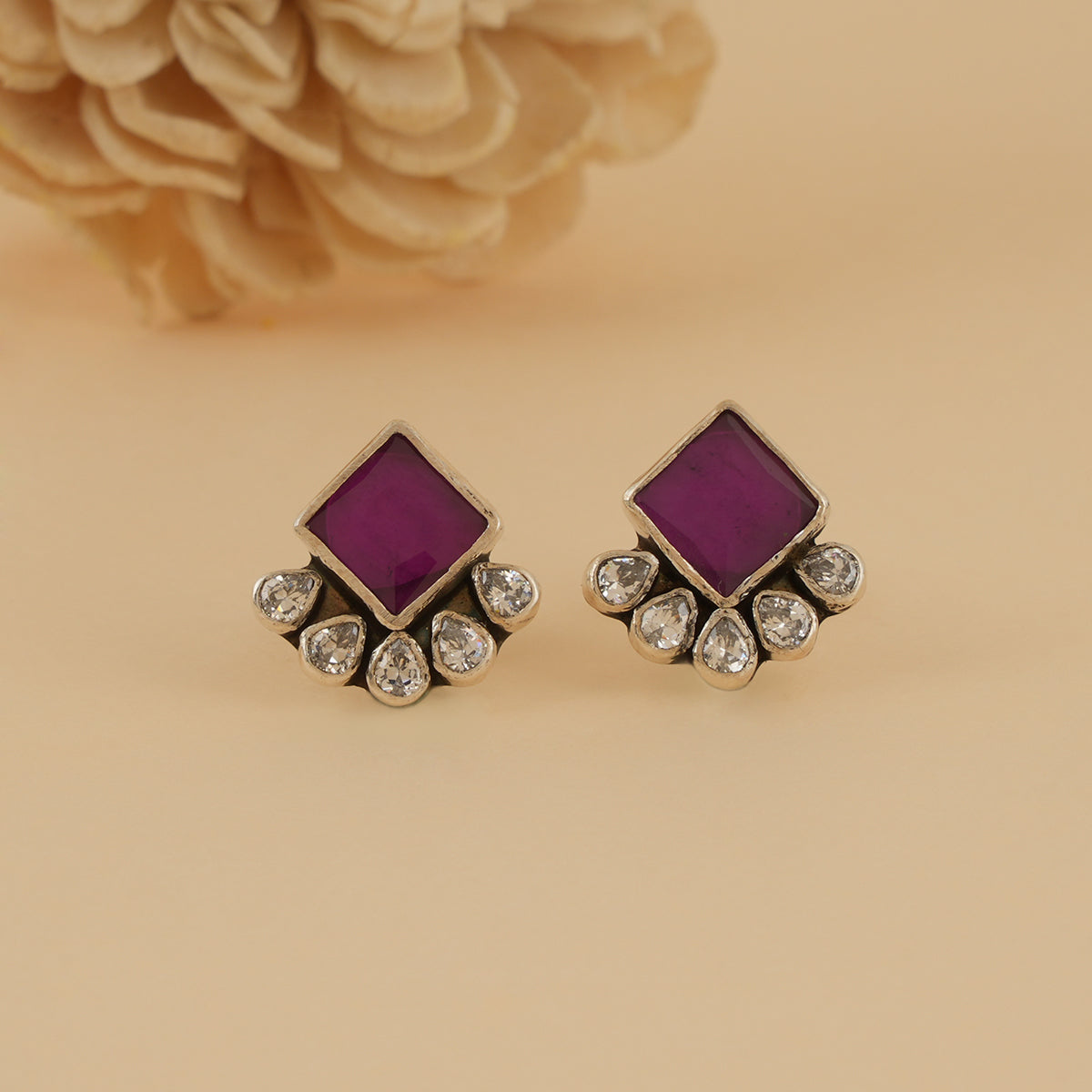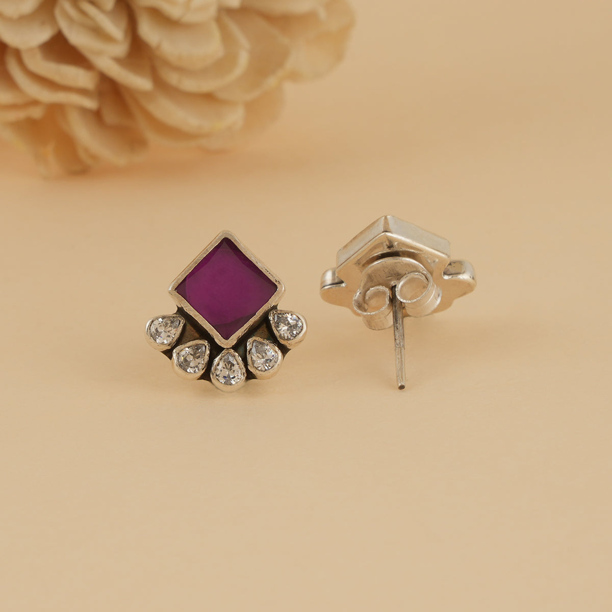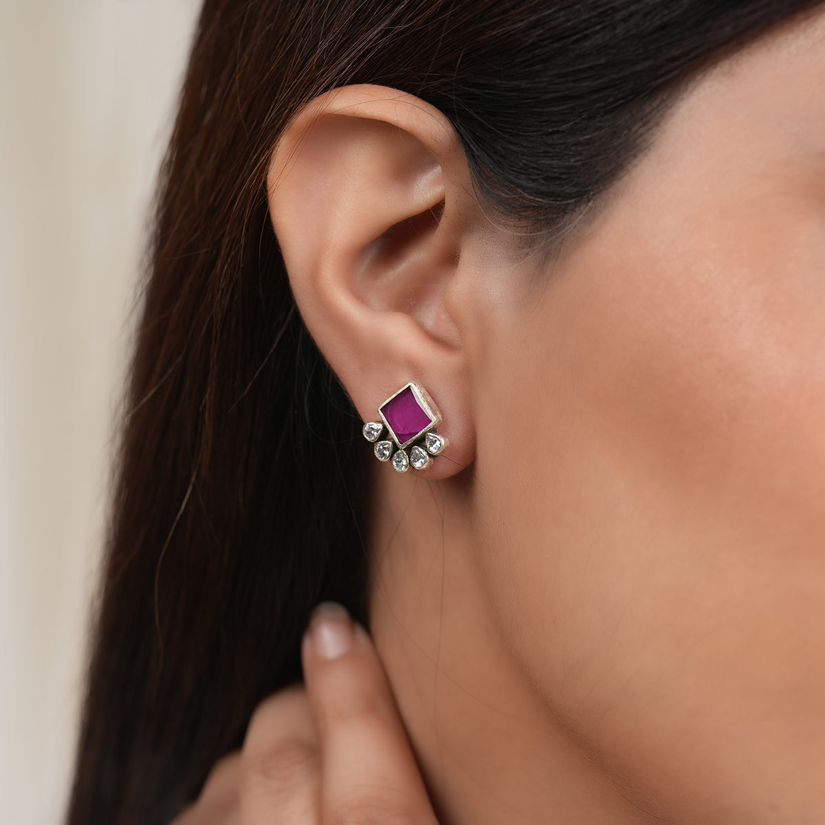 Add a refreshing pop of colour to your everyday style with these Pink Moissanite Silver Studs. Handcrafted in 925 sterling silver, the earrings feature a soft pink square stone beautifully complemented by a fan of sparkling zircon drops.